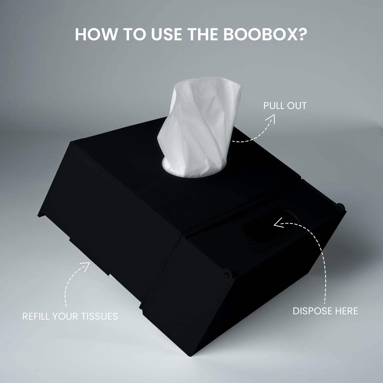 The Boo Box is a smart and convenient tissue box holder designed to keep your workspace or home tidy and organized. Featuring an integrated mini disposal bin, it eliminates the hassle of rushing to the trash can every time you use a tissue.