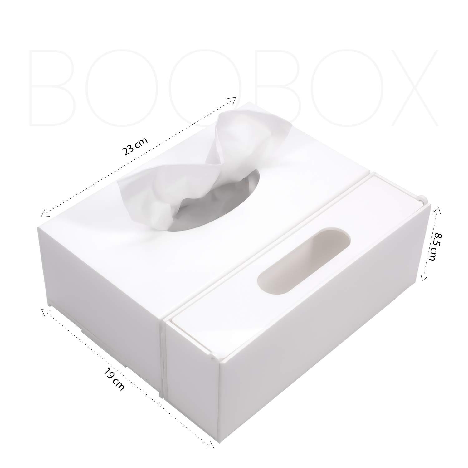 The Boo Box is a smart and convenient tissue box holder designed to keep your workspace or home tidy and organized. Featuring an integrated mini disposal bin, it eliminates the hassle of rushing to the trash can every time you use a tissue.